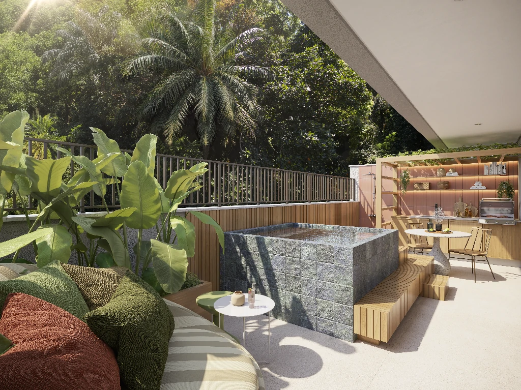 O alto Gaví foi criado para equilibrar corpo e mente. Piscina com raia de 25 metros, ofurô, banheira de gelo, academia, crossfit ao ar livre, espaço gourmet e lounge com vista para o verde da Gávea.